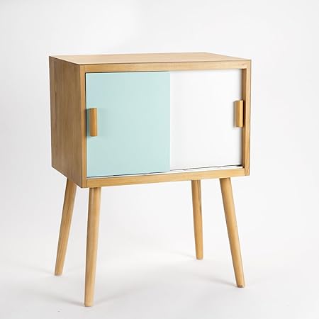 Meuble Vintage Scandinave 2 Portes Coulissantes Bleu Et Blanc