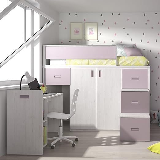Lit Mezzanine Gemma Bureau Armoire 90x200cm Matelas