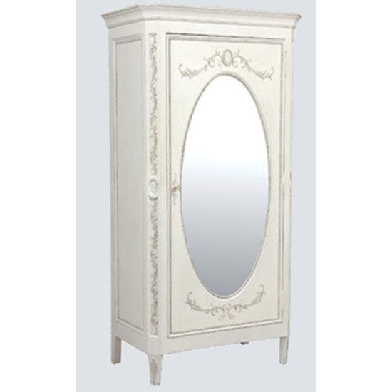 French Armoire Wardrobe With Oval Mirror Perle Free Delivery