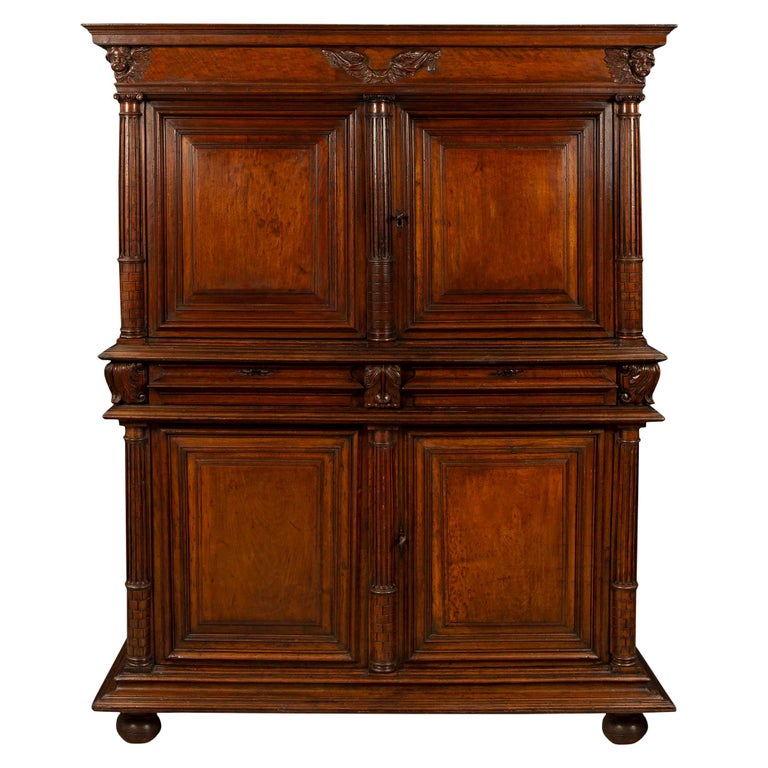 17th Century Italian Antique Louis Xiv Walnut Carved Wardrobe Or