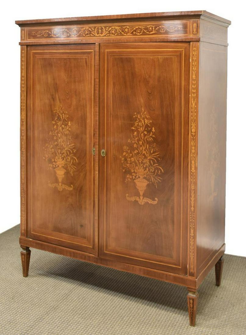 Large Italian Walnut Armoire With Marquetry Inlay Solvang