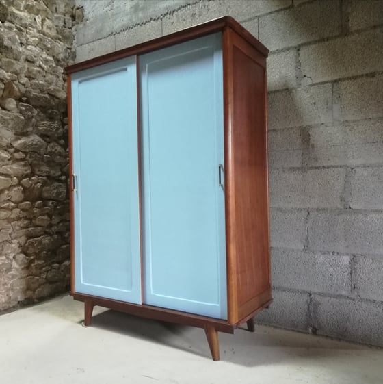 Armoire Vintage Chene Relooke Bleu Gris Pieds Compas