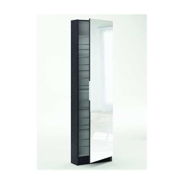 Armoire A Chaussures 1 Porte 1 Miroir Ebene Blanc Perle