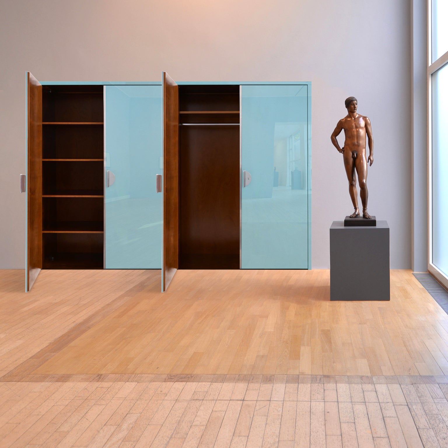 Modernist Built In Wardrobe In Handcrafted Glossy Lacquered Wood
