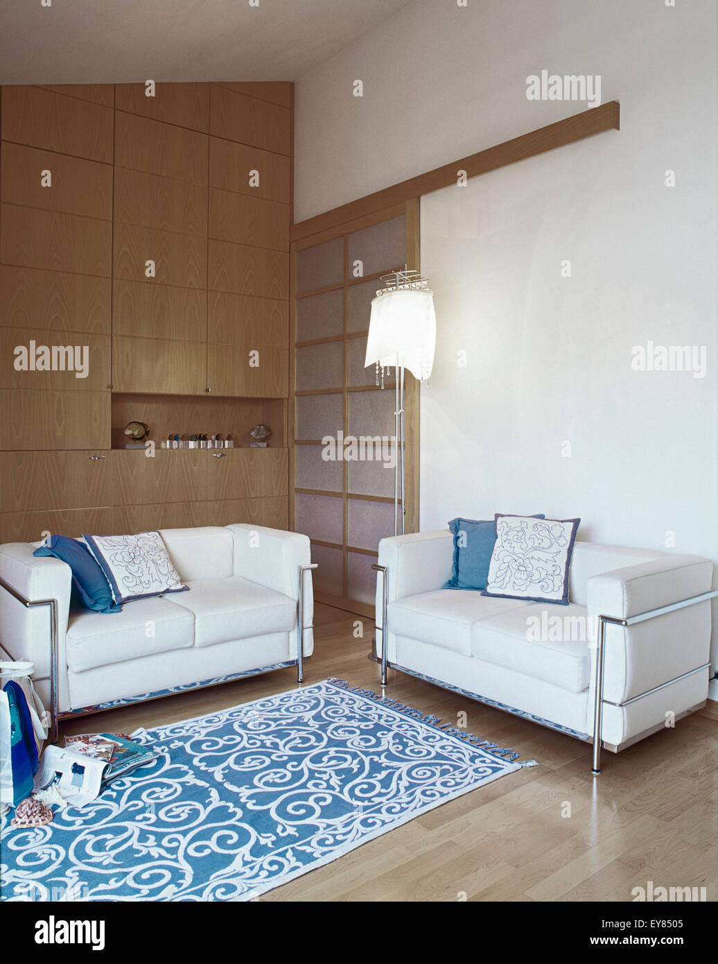 Deux Canape En Cuir Dans Le Salon Moderne Avec Plancher De Bois