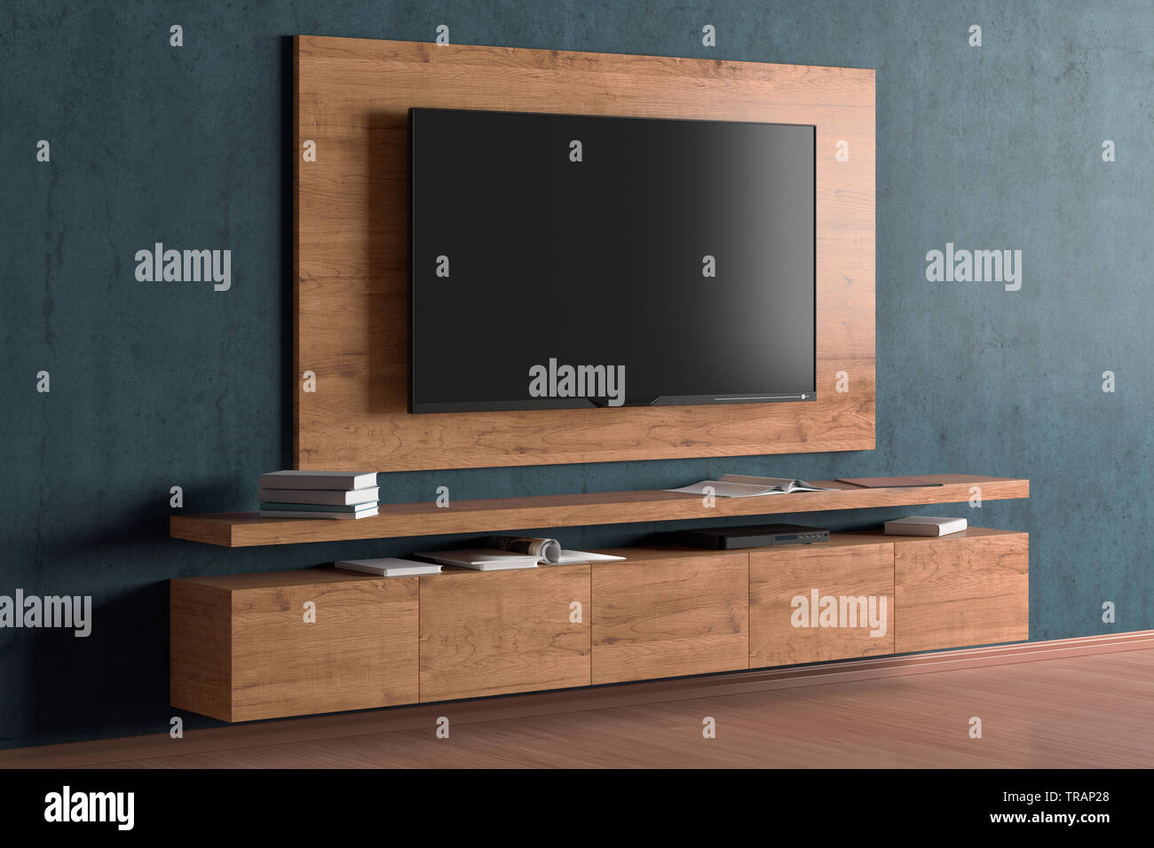 Tv Moderne Sur Une Armoire En Bois Dans Le Salon Illustration