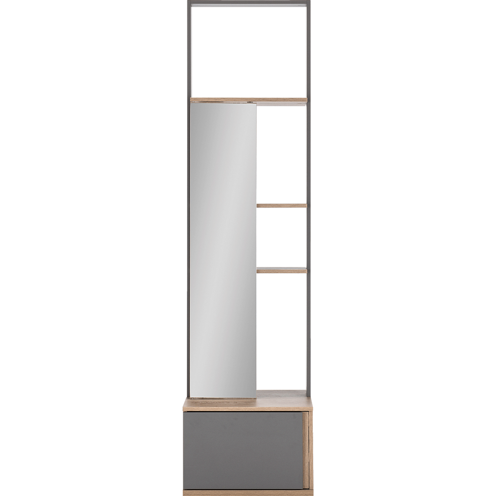 Module Armoire Avec 1 Porte Miroir Et 1 Tiroir Effet Chene Gris