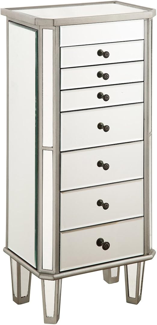 Beaumont Lane 7 Drawer Mirrored Jewelry Armoire In Silver