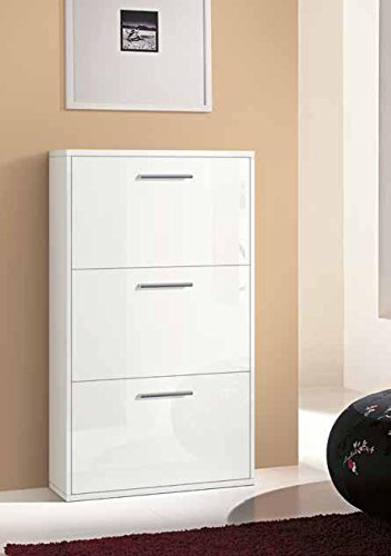 Meuble Chaussures Moderne Coloris Blanc Laque A 3 Portes Et Un Tiro