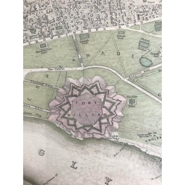 19th Century Antique Map Of Calcutta India With Fort William