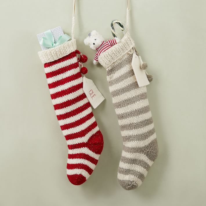 Knit Metallic Thread Stripes Christmas Stocking