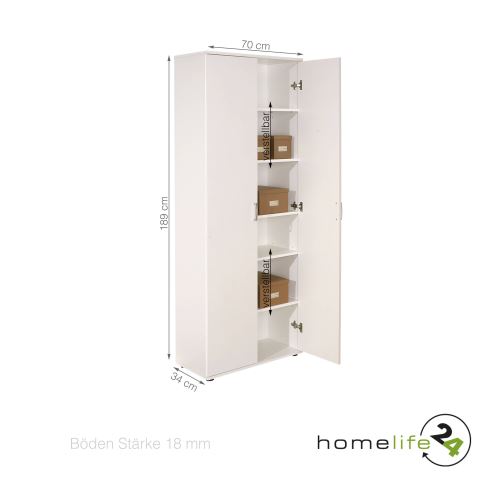 Armoire Rangement Bureau Etagere 2 Portes Bois Blanc Achat