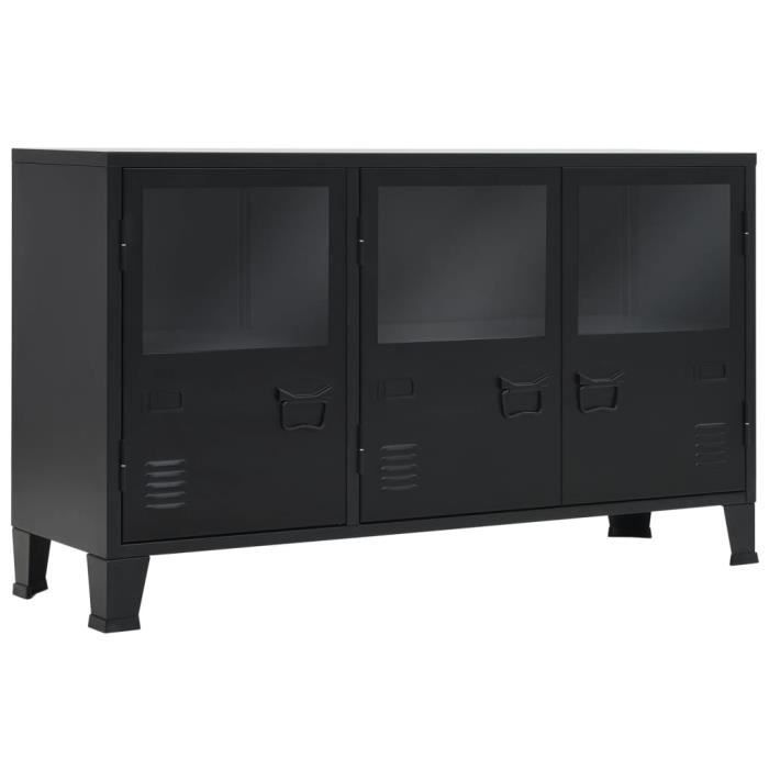 Buffet Armoire Metal De Style Industriel 130 X 35 X 70 Cm Noir