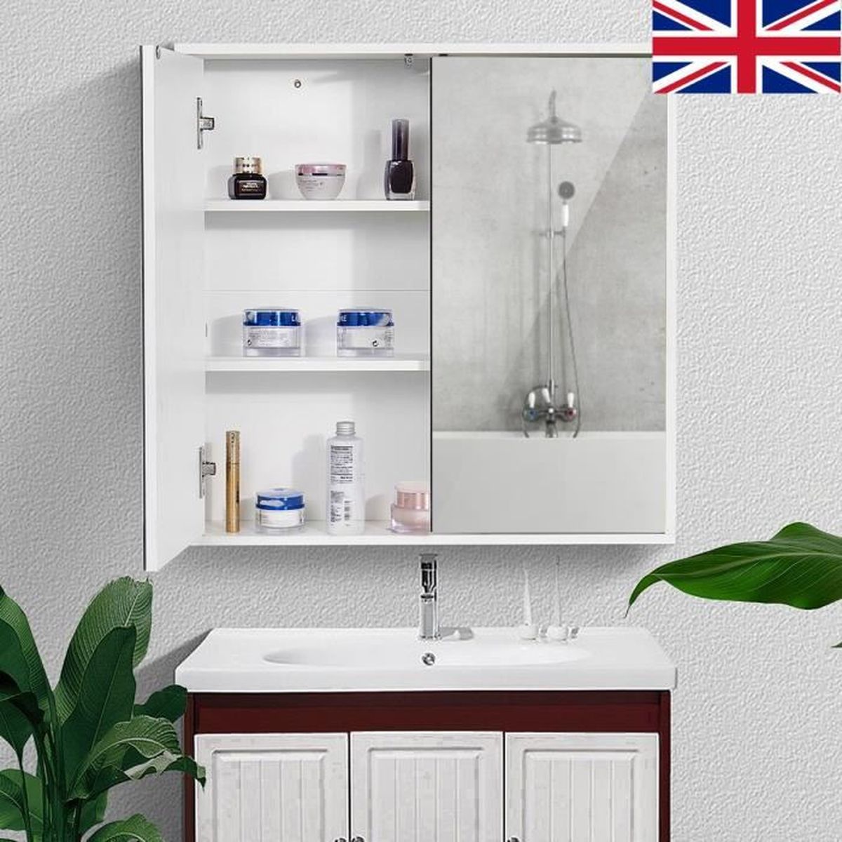 Neufu Armoire De Toilette Mural 2 Portes Fermeture Avec Mirroir
