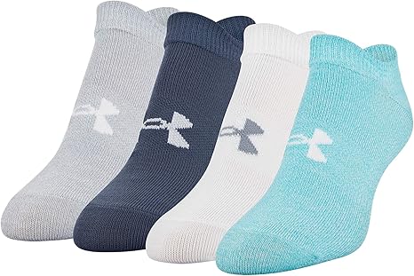 Under Armour Essential No Show Socks 4 Pair Blue Assorted Shoe