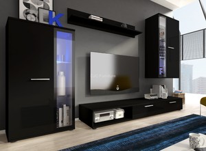 Meuble Tv Mural 5 Pieces Avec Eclairage Led Noir Achat Vente