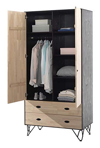 Gami Titouan Armoire 3 Portes 2 Tiroirs Imitation Frene Et Blanc