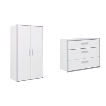 Commode 3 Tiroirs Et Armoire 2 Portes Tiago Blanc Bois Gami 2088
