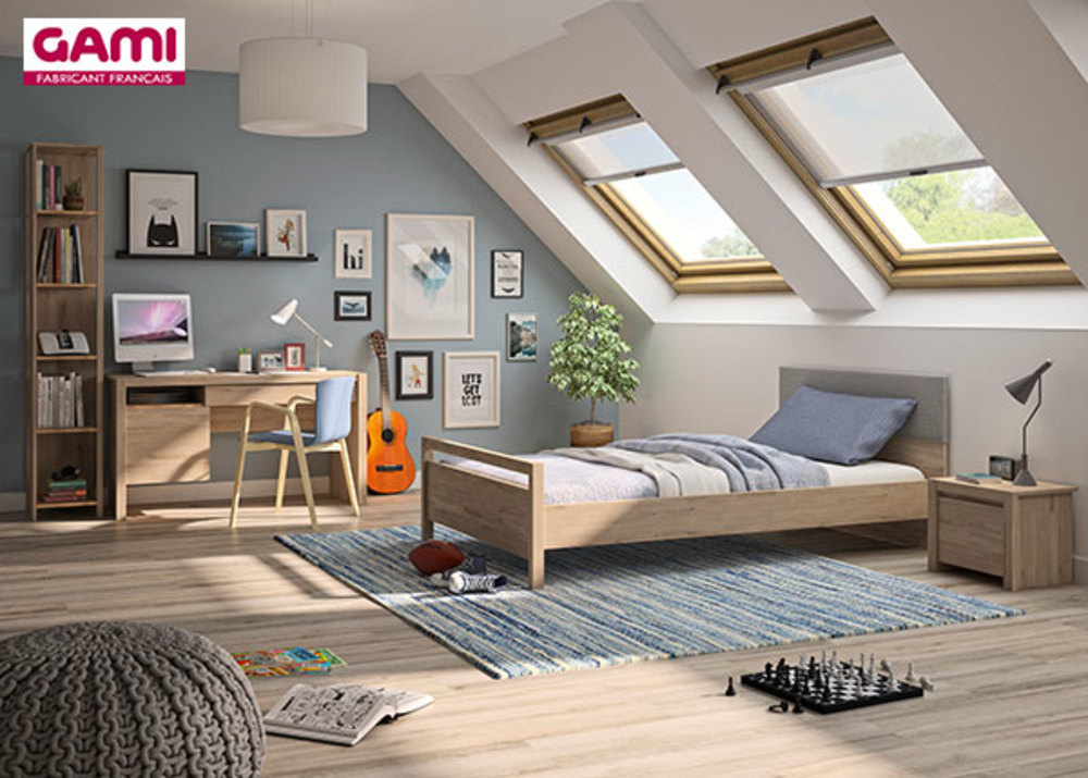 Gami Chambre Complete Lit Junior 90x190 Commode 3 Tiroirs