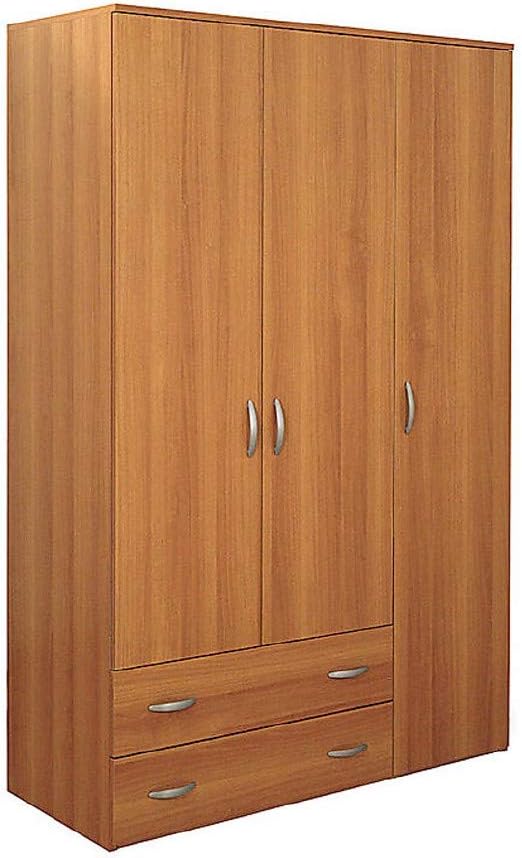 Divine Home Armoire Meuble 3 Portes 2 Tiroirs Bois Couleur Noyer