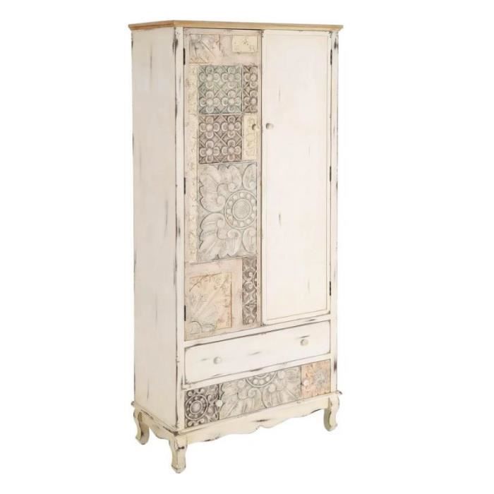 Armoire 2 Portes 2 Tiroirs Bois Creme Moondy L 80 X L 38 X H