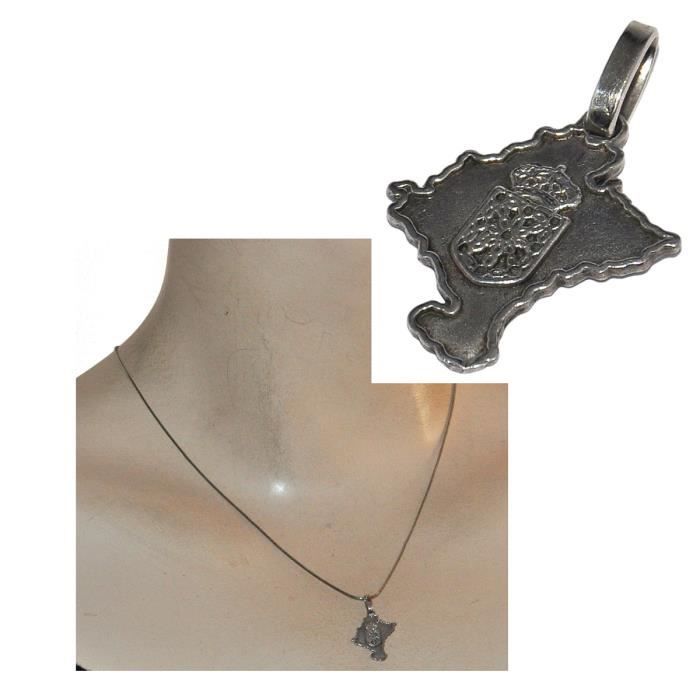 Pendentif Carte Armoiries Navarre Espagne Argent Massif 925 Bijou