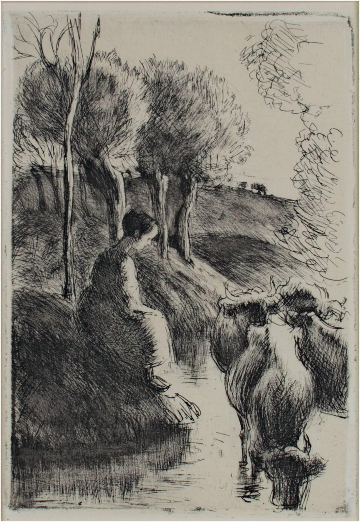 Camille Pissarro Vachere Au Bord De L Eau Etching And
