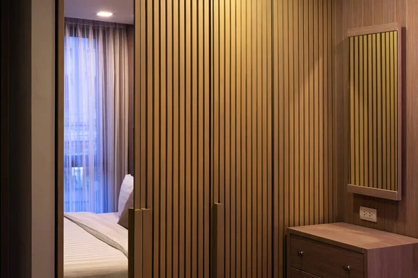 Coin D Un Interieur De Chambre A Coucher Blanc Et En Bois Avec