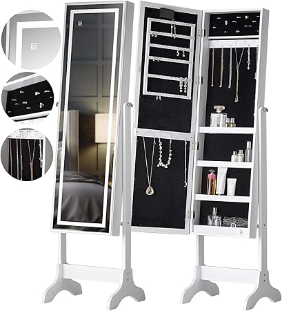 Festnight Armoire A Bijoux Sur Pied Avec Miroir Et Eclairage Led
