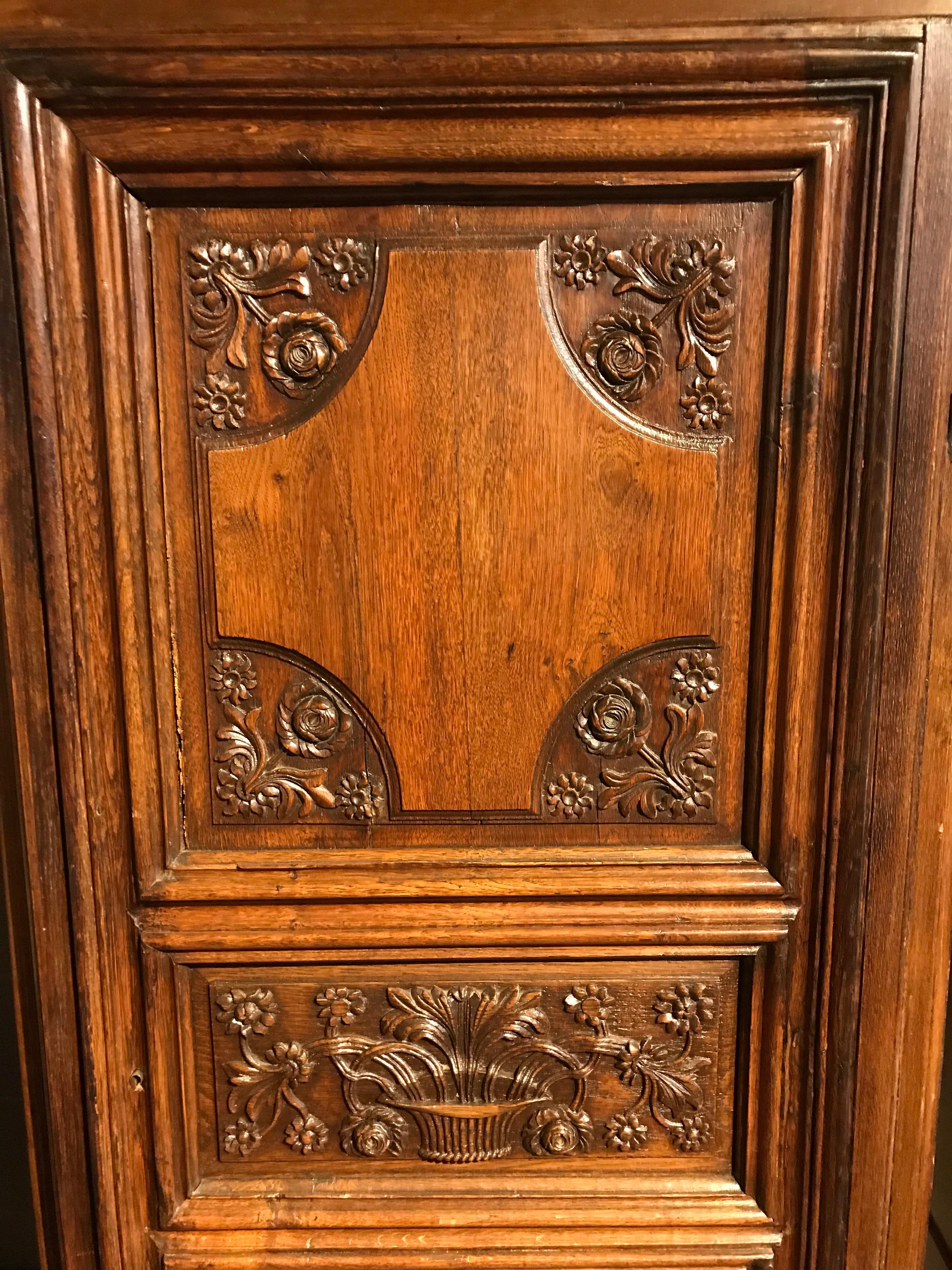 Small Vintage French Armoire With Carved Period Door For Sale At