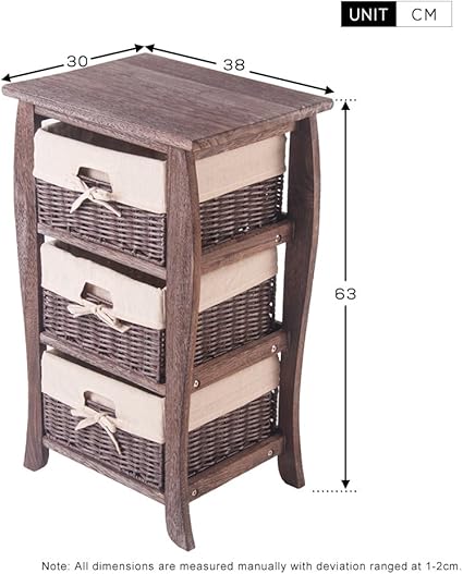 Vintage Wood Elegant 3 Tiroirs Armoire Panier En Rotin Armoire
