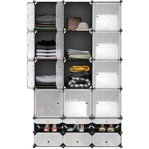 Langria Armoire Penderie 16 Cubes Modulable Etageres Plastique