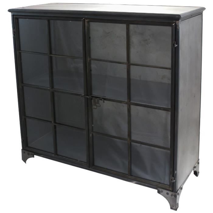 Bahut Buffet Armoire Vitree Style Industriel Fer Metal 100 Cm