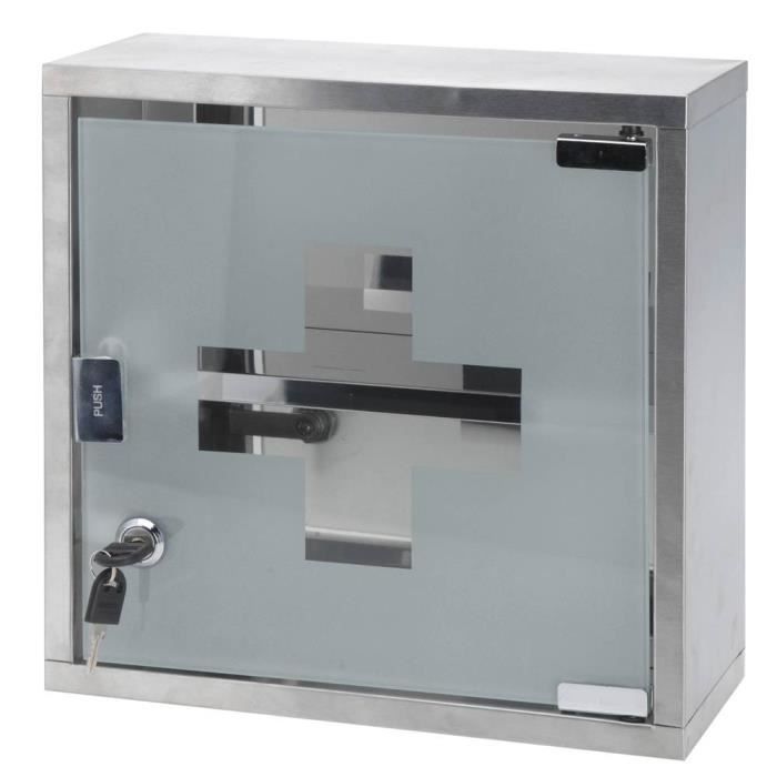Armoire A Pharmacie Avec Cle Acier Et Verre Depoli Achat Vente