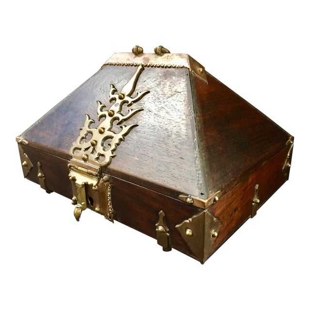 Antique Kerala Ethnic Indian Mahogany Jewelry Box With Brass