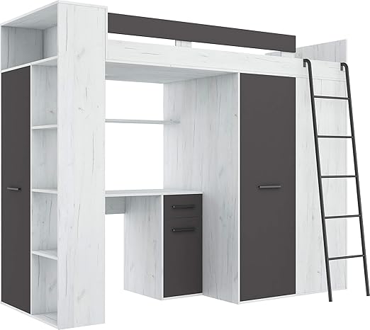 Lit Mezzanine Gemma Bureau Armoire 90x200cm Matelas