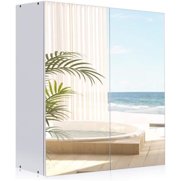 Armoire A Pharmacie 2 Portes Miroir Bois Materiau Blanc