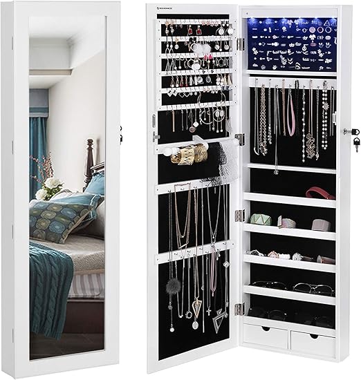 Ikayaa Fashion Mirrored Hanging Jewelry Armoire Cabinet Jewelry