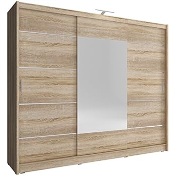 Armoire A Portes Coulissantes Avec Miroir Teinte Chene Clair