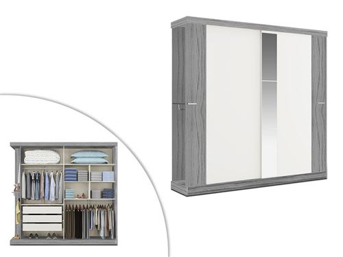 Armoire Adalrik L231cm Blanc Et Gris 2 Portes Miroir