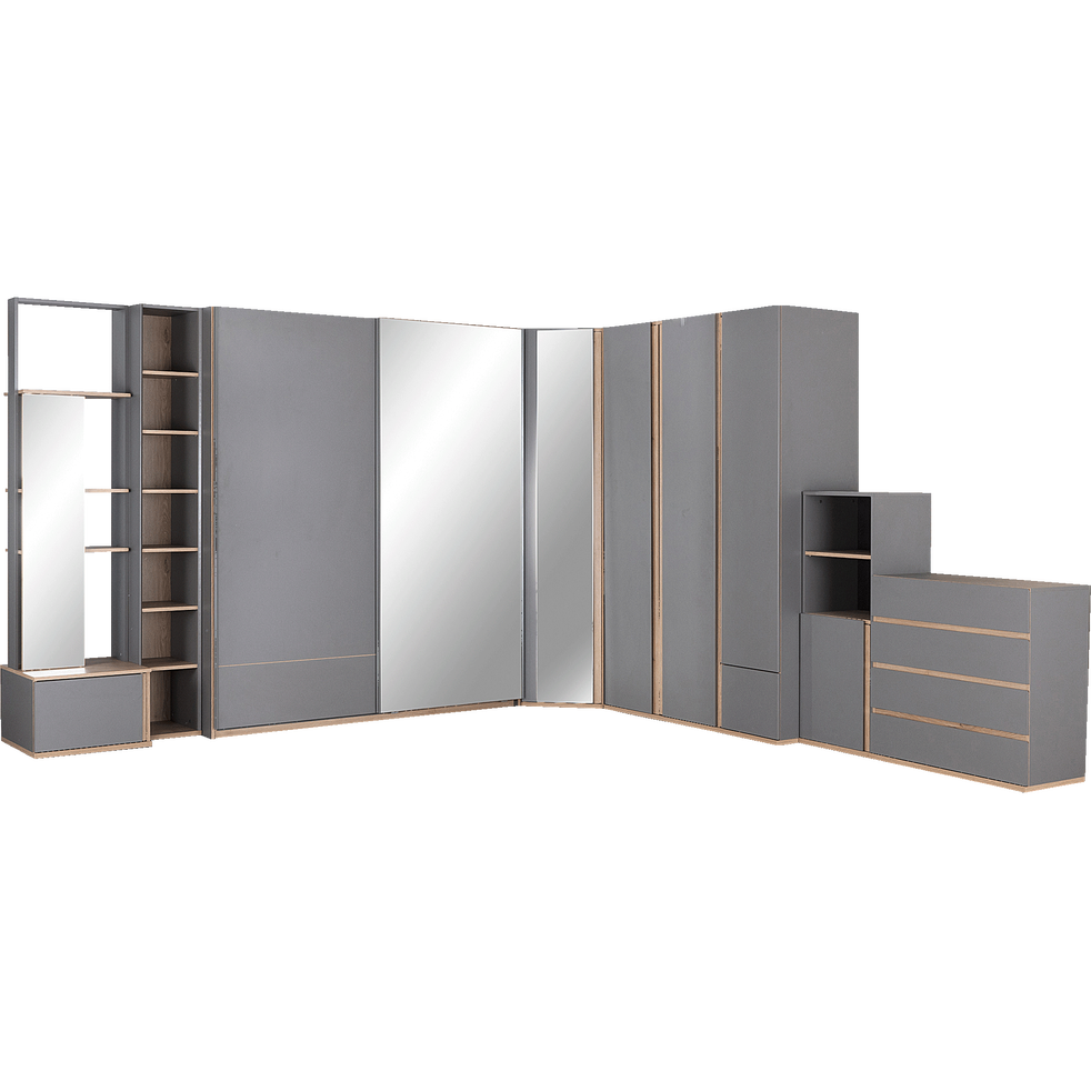 Armoire Double Dressing Gris Graphite Avec Miroir Pour Chambre Adulte