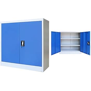 Vidaxl Armoire De Bureau Metal 90x40x90 Cm Gris Et Bleu Meuble