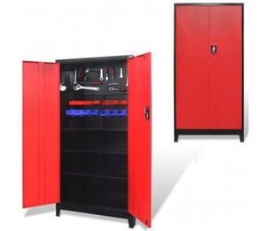 Grand Noir En Acier Rouge Outil Armoire Meuble De Rangement Avec 2