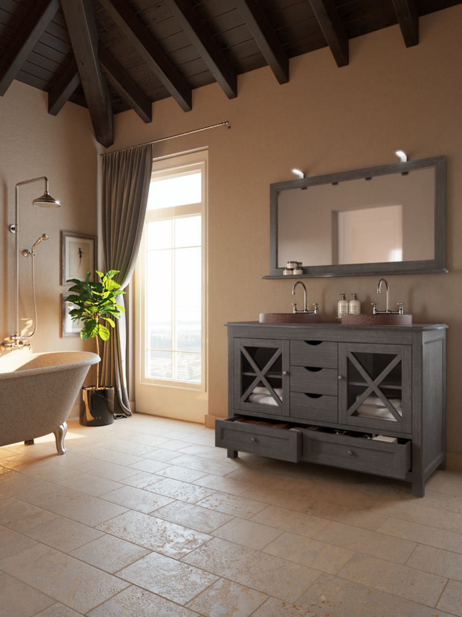 Meuble Salle De Bain Boheme Gris Avec Portes En Verre 120 Cm