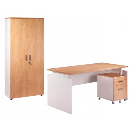 Pack Bureau 160 Caisson 2 Tiroirs Armoire Blanc Chene Clair