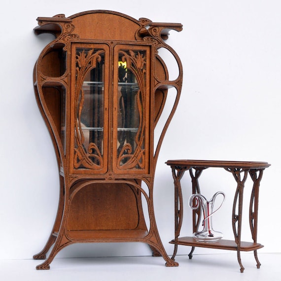 Art Nouveau Cabinet Kit 1 12 French Armoire Dollhouse Etsy