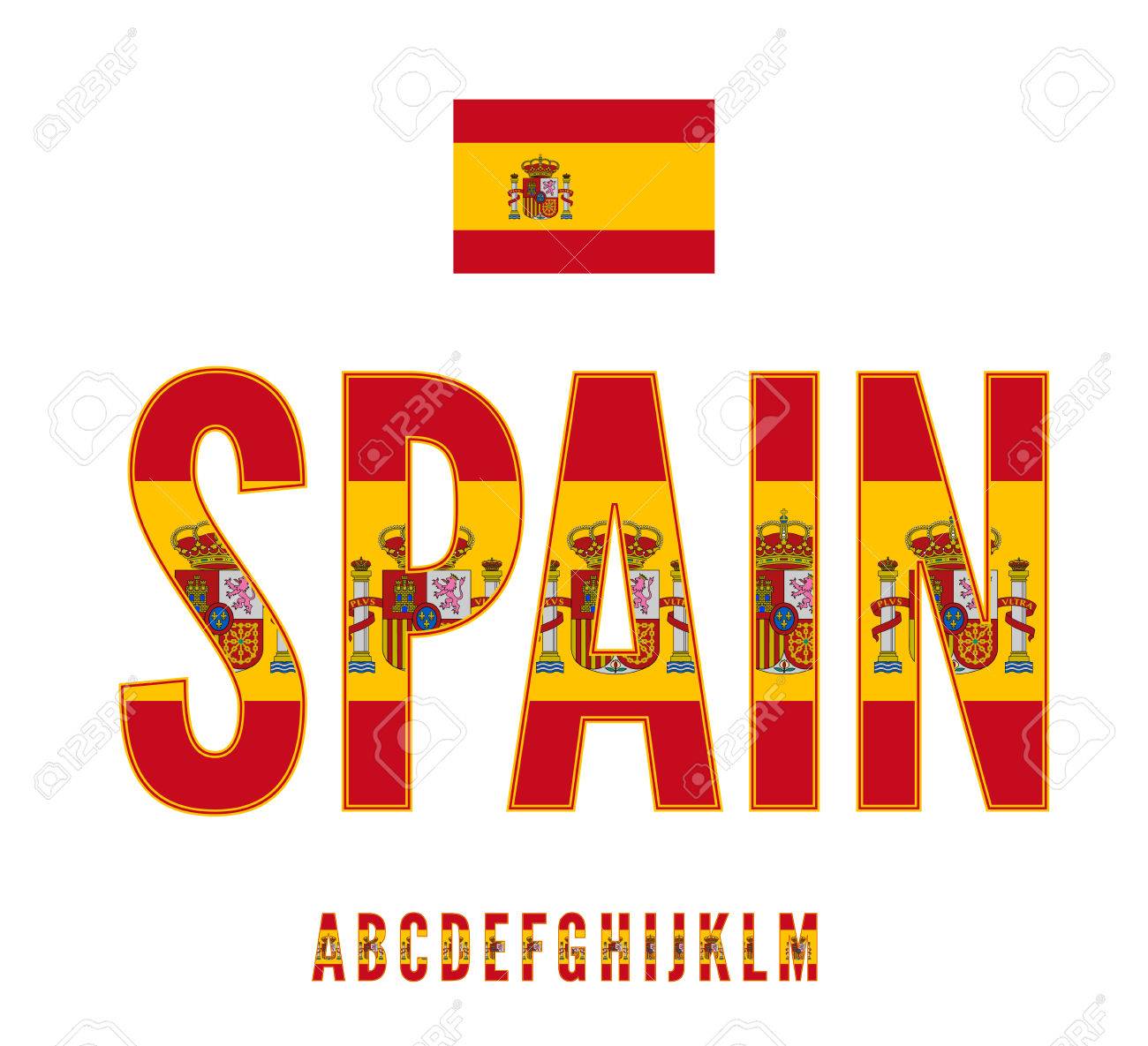 Drapeau National D Espagne Avec Armoiries Stylisees Font Alphabet