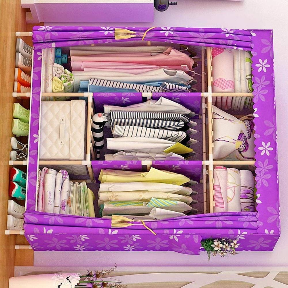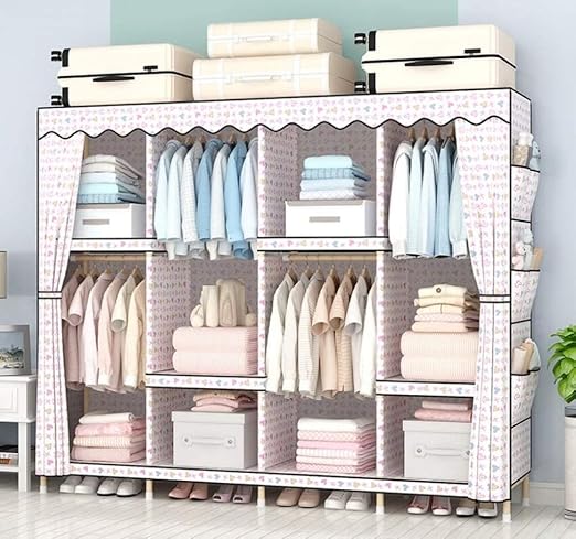 Grand Armoire En Tissu Tissu Oxford En Bois Massif Avec Boite De