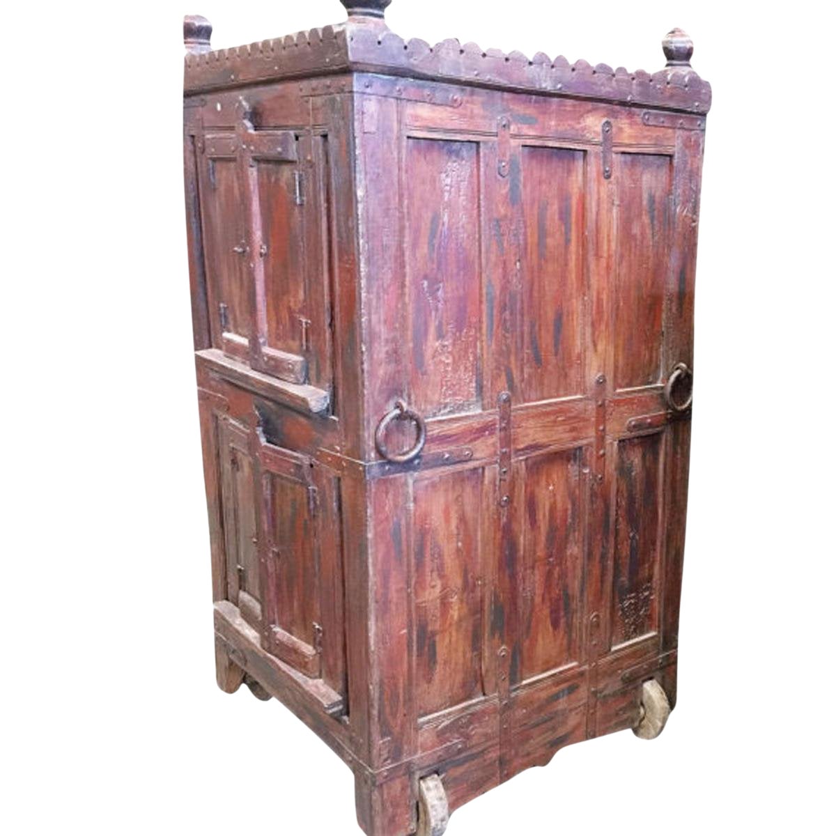 Antique Bar Almirah Red Cabinet Vintage Indian Armoire On Wheels