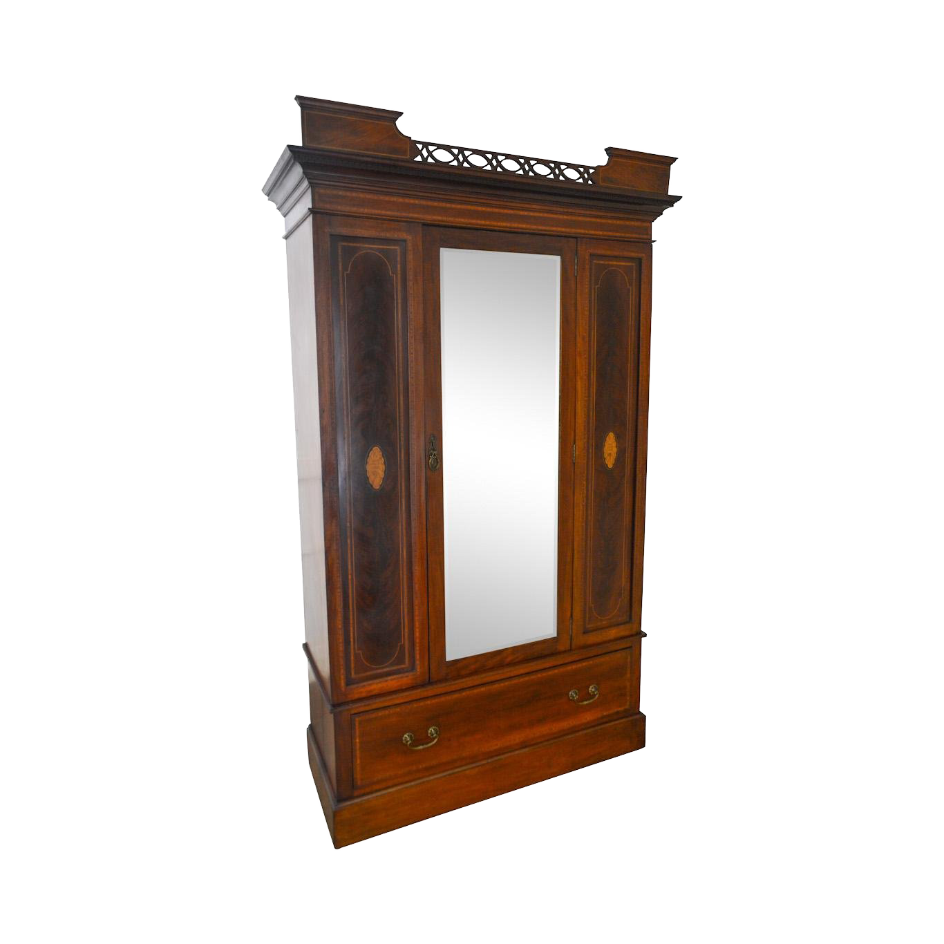 Edwardian Period Antique English Mahogany Inlaid Mirror Door